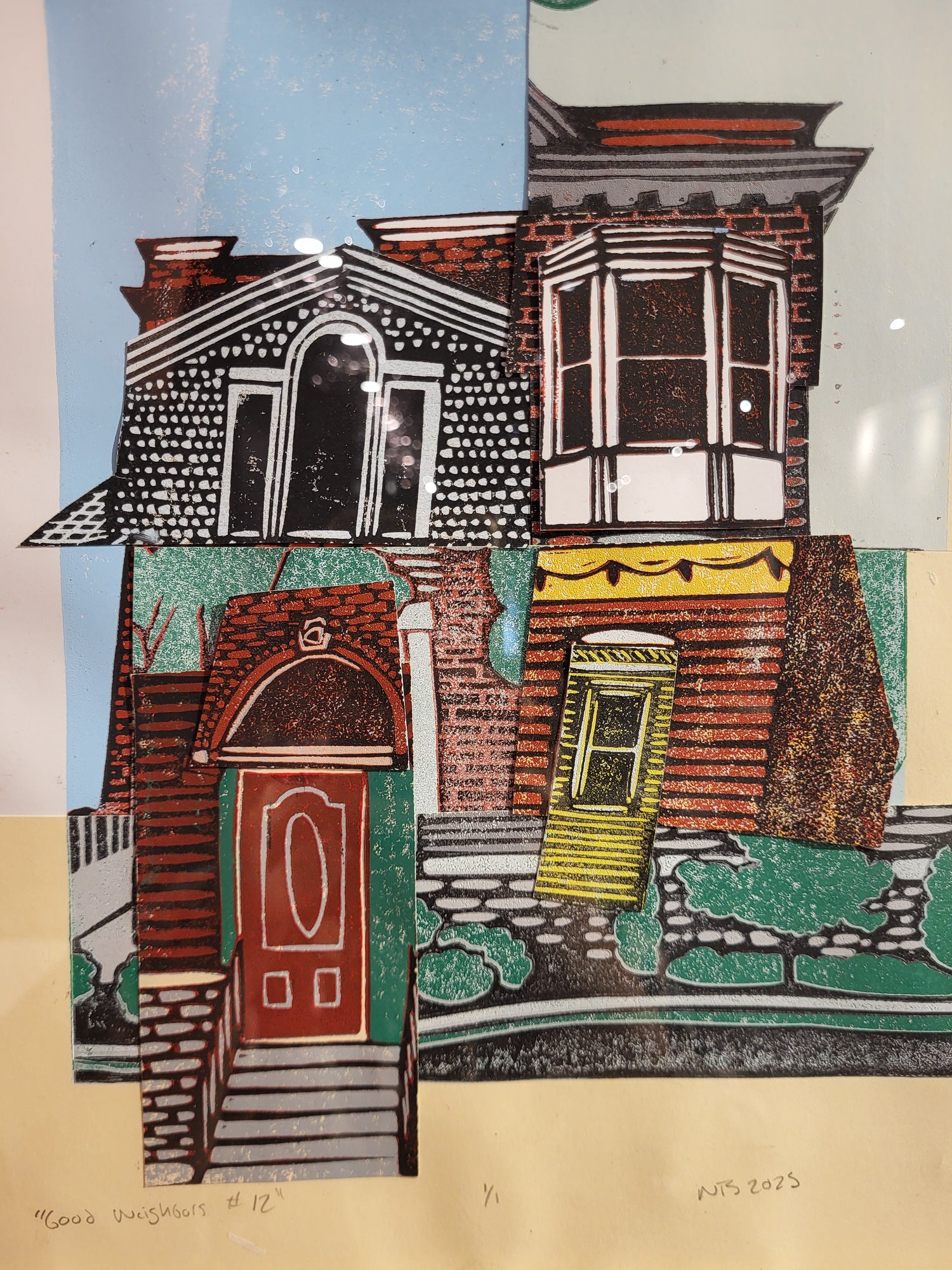 linocut collage framed